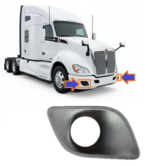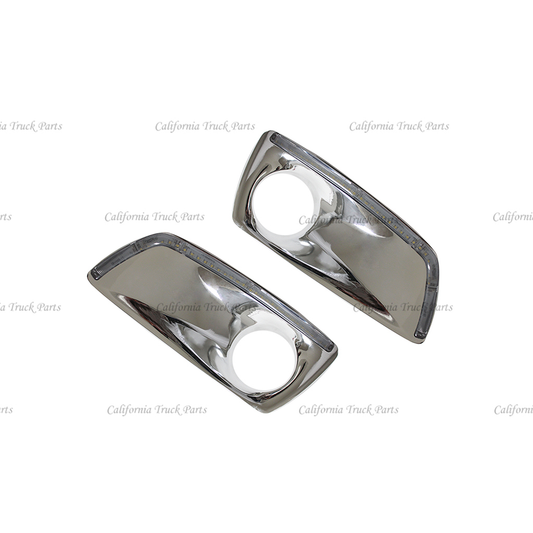 Bumper Auxiliary Fog Light Bezels Pair (Left & Right) for 2011-2020 Kenworth T680 Black/Chrome