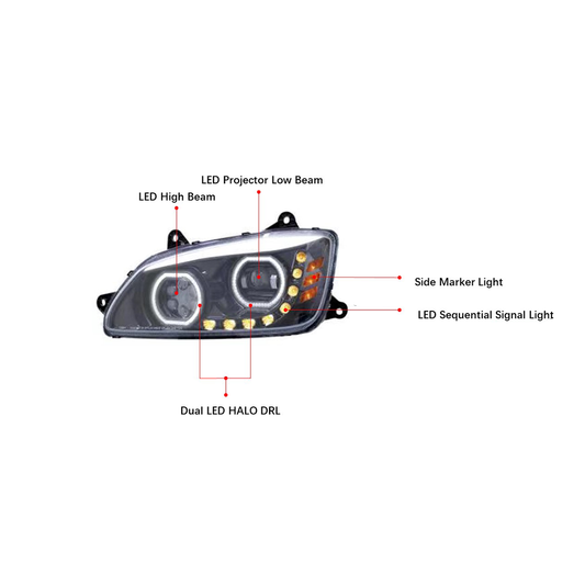 Halogen Headlights Assembly Compatible with 2018-2024 Freightliner Cascadia