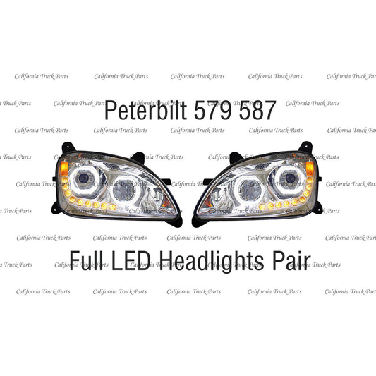 Peterbilt 579 587 Full LED Headlights Sequential Turn Signals Chrome/Black Pair 2011-2020
