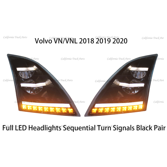 Volvo VNL Full LED Headlights Sequential Turn Signals Chrome/Black Pair For 2018+